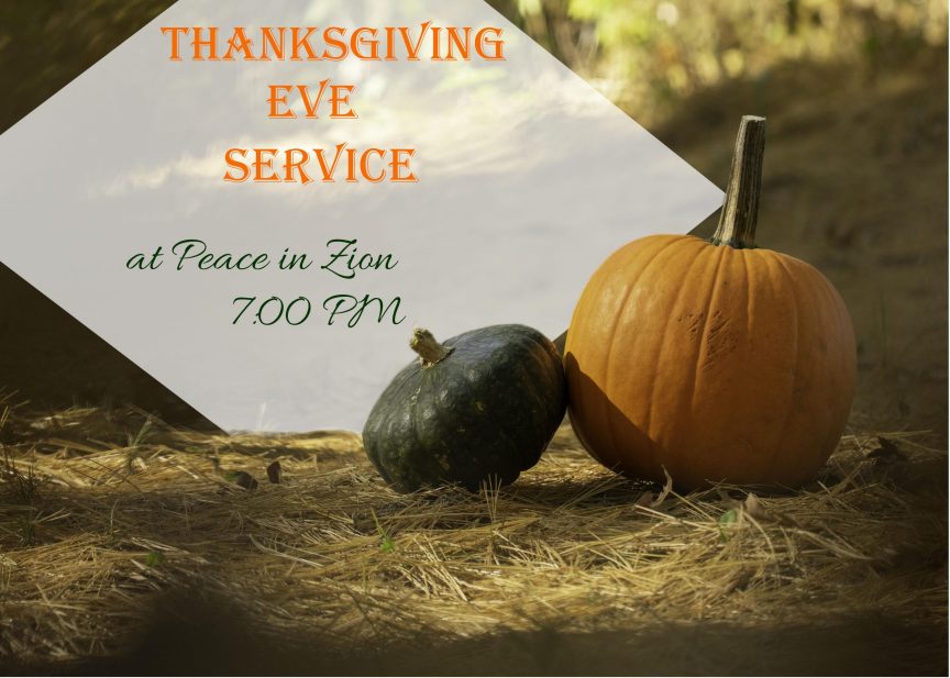 Join us for a combined worship service at Peace in Zion on Thanksgiving Eve at 7:00 PM.